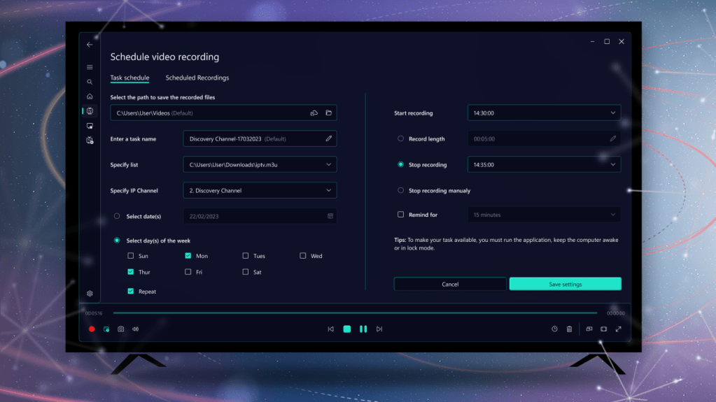 Capture your favorite shows and movies with just a few taps. Never miss a moment of your beloved content again – record it and enjoy it on your own schedule. Add your own channels, curating a personalized library tailored to your unique preferences. Whether you’re passionate about niche interests or want to incorporate local or regional content, the Client for IPTV lets you integrate your own channels seamlessly.
