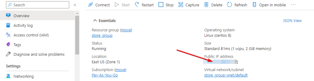 - To connect to the server, you need to know the virtual machine’s IP address. You can find it in your Azure account by selecting the VM from the list. In the “Overview” section, the IP address is displayed in the “Public IP Address” field.