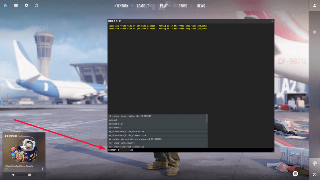 To connect to the server, launch “Counter-Strike 2” game on your PC, open the console by pressing the “`”, type connect <VM_IP> and press Enter.