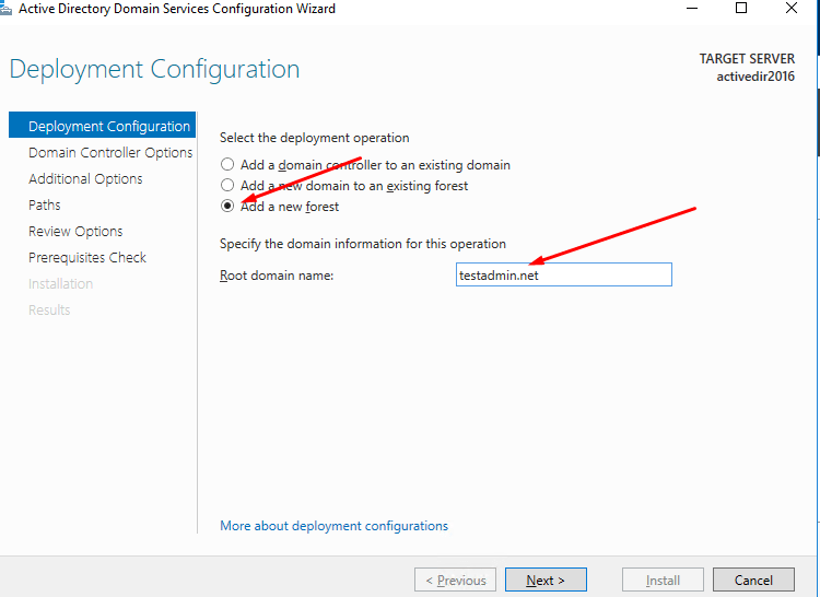 - This will start the Active Directory Configuration Wizard. The following demo shows how to set up a new forest. But if you add this to an existing domain, you can choose the relevant option. Select the option to add a new forest and type FQDN for the domain. Then click <next>.