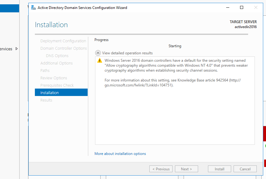 - Then the installation process of promoting this server to a Windows domain controller will be started.