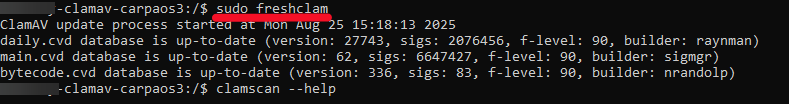 Configuration and connection to Clam AntiVirus on CarpaOS 3.22