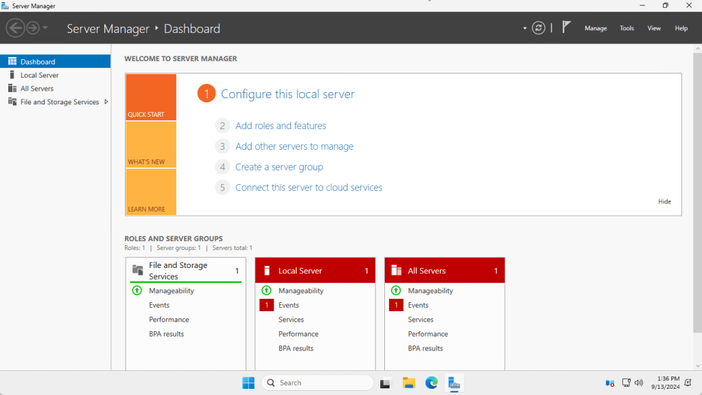 - The Server Manager has started.