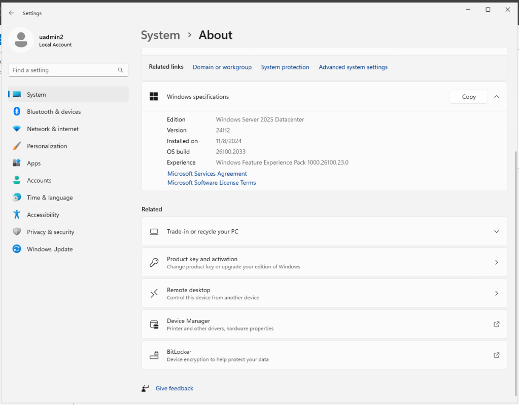 Your Datacenter for Windows Server 2025 virtual machine is now ready for use, in a clean initial state.