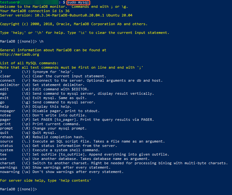 $ sudo mysql