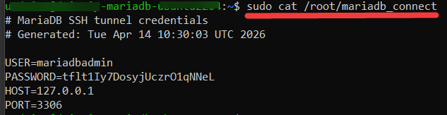 $sudo cat /root/mariadb_connect