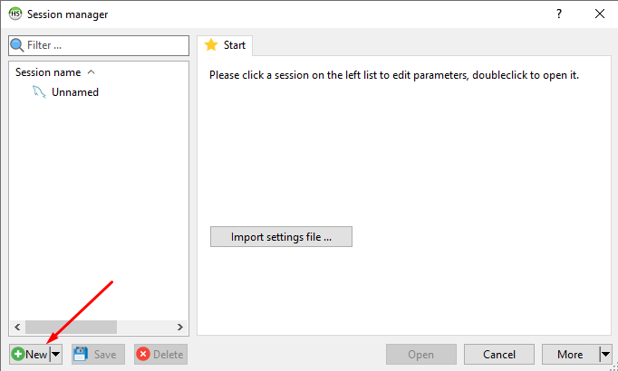 - Run HeidiSQL. In the lower-left corner, click on the New button to create a new session