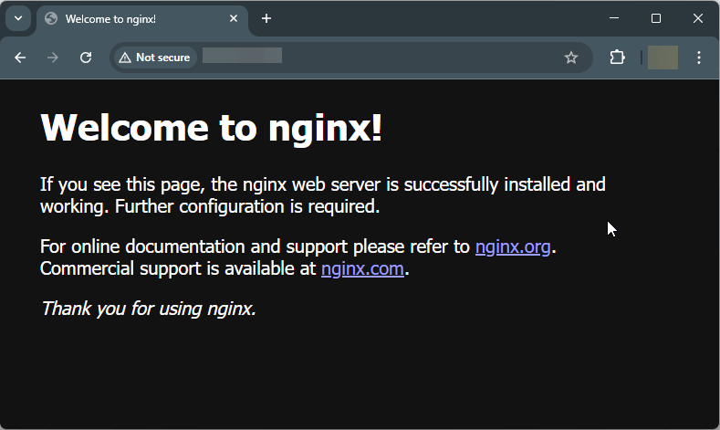 - Entering http://*VM_IP* in a browser window opens a test server page.