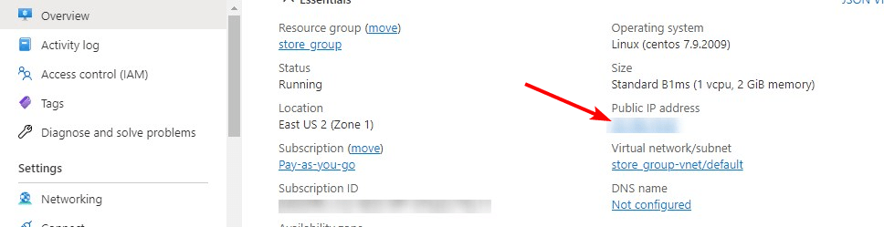 - For the connection to the server, you should know the IP address of the VM. You can find it in the personal account of Azure. You need to select the virtual machine from the list. By clicking the item “Overview”, your IP is displayed in the “Public IP Address” line.