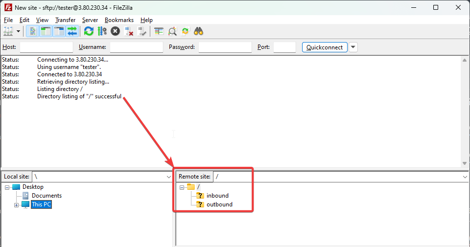 Connecting to SFTP using FileZilla Client