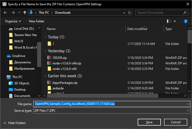 - You should save the file named “…_openvpn_remote_access_l3.ovpn” on your device.