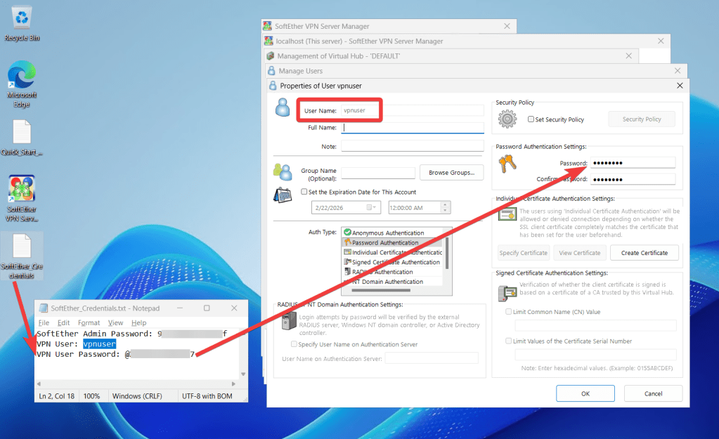 Configuring and Connecting to SoftEther VPN on Windows Server 2025 DC Azure Edition