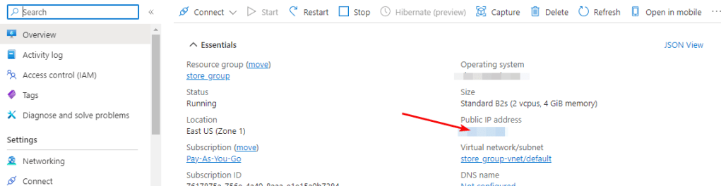 For the connection to the server, you should know the IP address of the VM. You can find it in the personal account of Azure. You need to select the virtual machine from the list. By clicking the item “Overview”, your IP is displayed in the line “Public IP Address”.