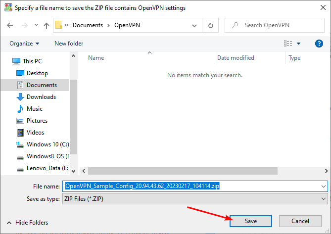 - You should save the file named “…_openvpn_remote_access_l3.ovpn”.