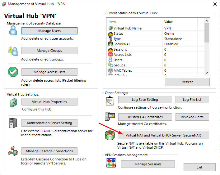 - Open “Virtual NAT and Virtual DHCP Server (SecureNAT)”: