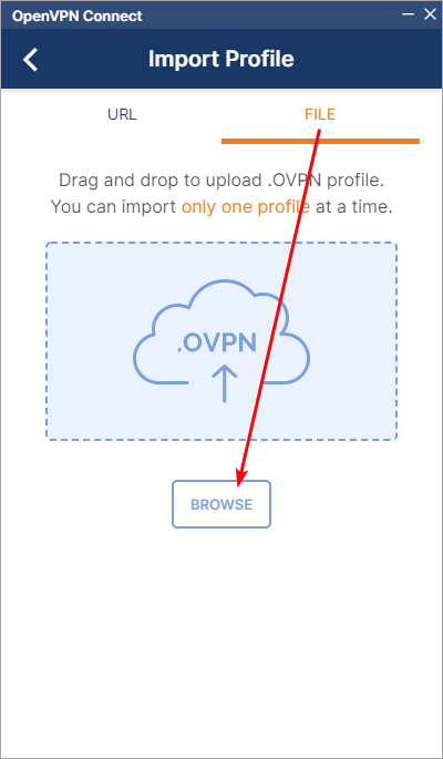 - Now the OpenVPN is ready to work, and you can run it. After it is started, add your VPN configuration file.
