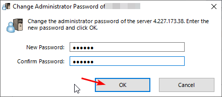 - Upon first authorization, you need to set a new administrator password to connect to the server.