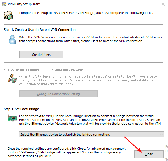 - Next, close the window “VPN Easy Setup Tasks”.