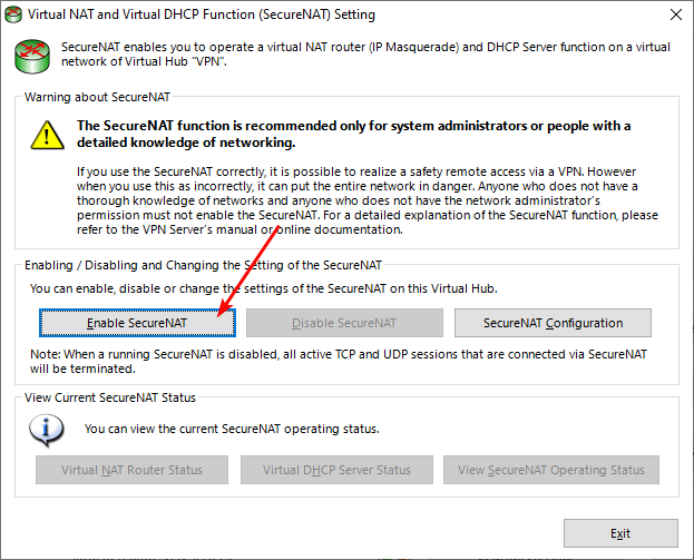 - Click “Enable SecureNAT”: