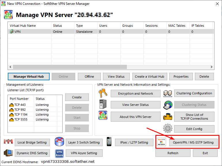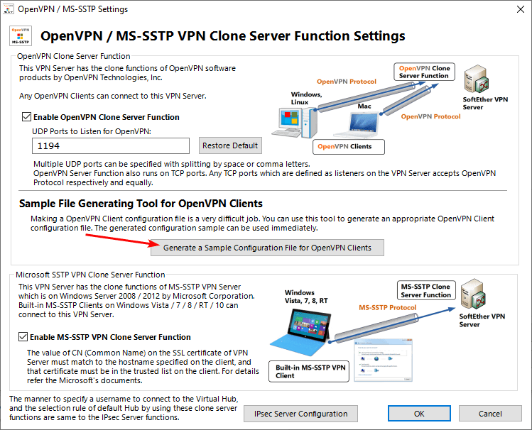 - To create configuration files, click on the “OpenVPN / MS-SSTP Settings” button.