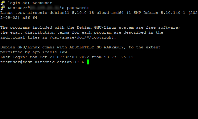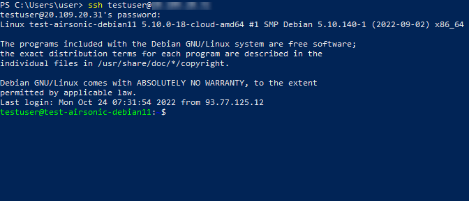 Where “user” is the username that was specified while creating the virtual machine and “*vm_ip*” is the VM IP address.
