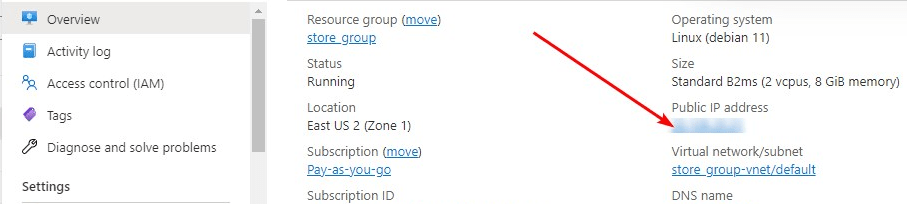 - Run the VM through Azure Portal. To customize the InfluxDB Server, you need to know the server IP address. You can find it in your Azure account. You need to select the virtual machine from the list. By clicking the item “Overview”, your IP is displayed in the “Public IP Address” line.