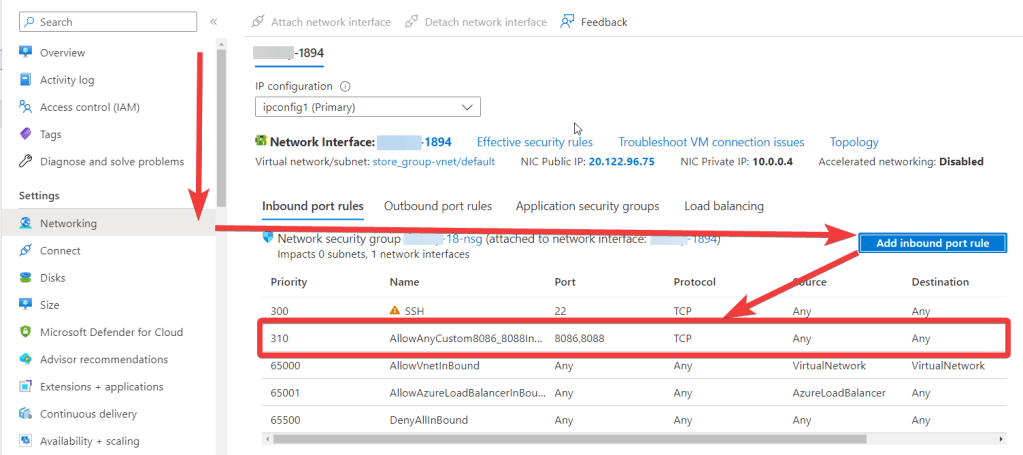 - To work, you should open 8086 and 8088 TCP ports in the network properties in the Azure firewall.