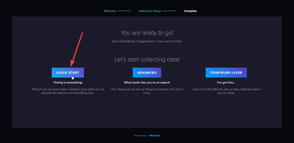 - Now you are ready to work with InfluxDB.