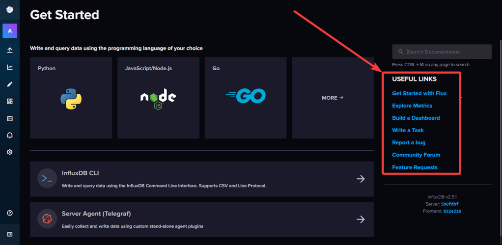 - To get more information visit Get started with InfluxDB | InfluxDB OSS 2.5 Documentation or use the following links