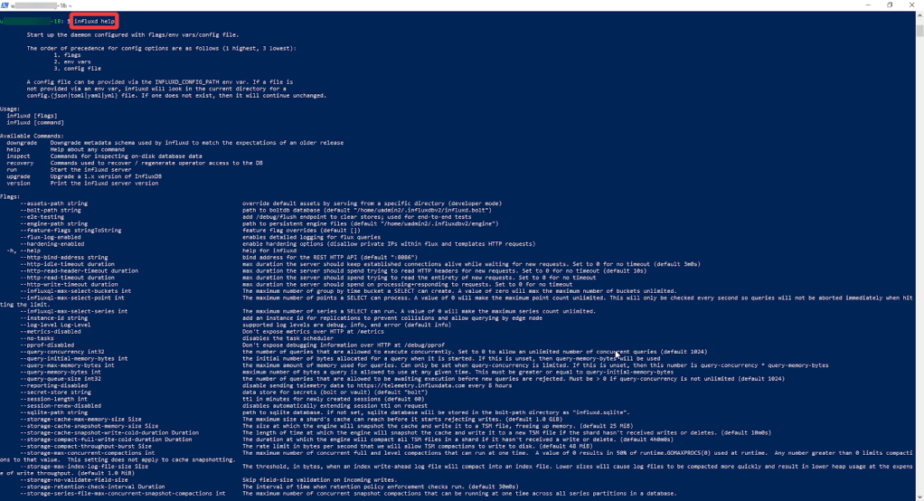 - For a complete list of commands with descriptions, type influxd help: