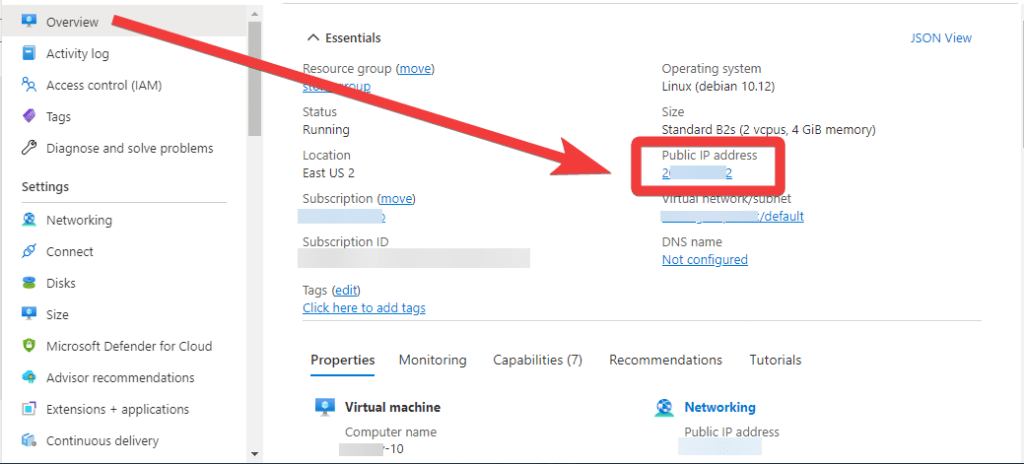 - For the connection to the server, you should know the IP address of the VM. You can find it in the personal account of Azure. You need to select the virtual machine from the list. By clicking the item “Overview”, your IP is displayed in the “Public IP Address” line.