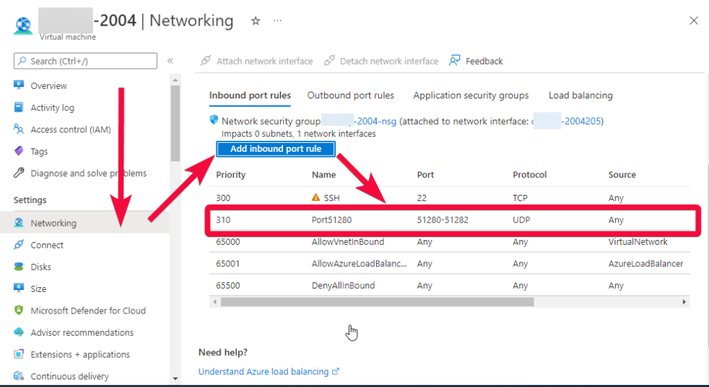 To work, you should open ports 51280-51282 UDP in the network properties in the Azure firewall.