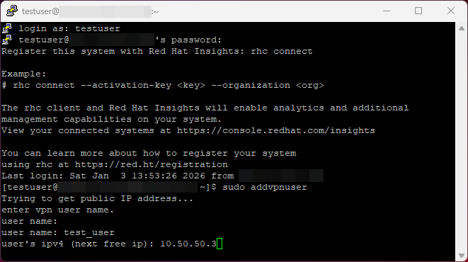 $ sudo addvpnuser