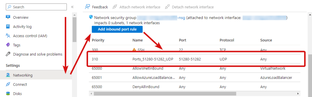 To work, you should open ports 51280-51282 UDP in the network properties in the Azure firewall.