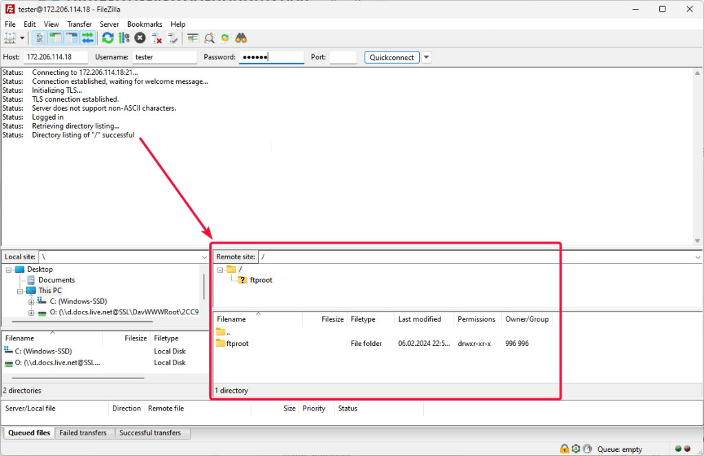 - After installing and running the FileZilla client, you need to follow these steps to connect to the VSFTP server: