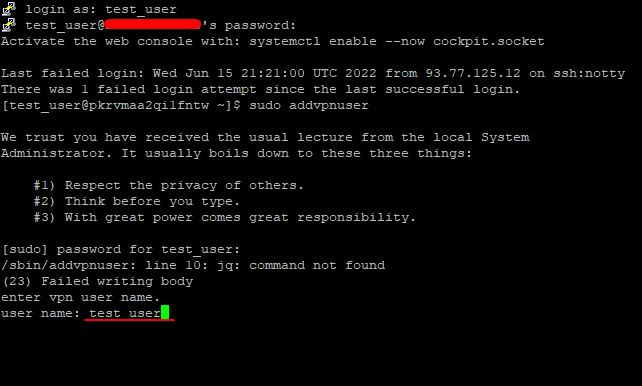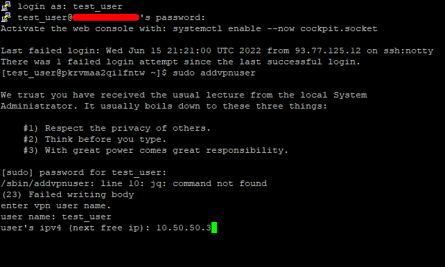 $ sudo addvpnuser